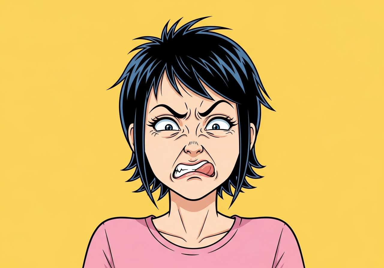 顔をしかめること。痛み、不快感、嫌悪感などを表す表情。