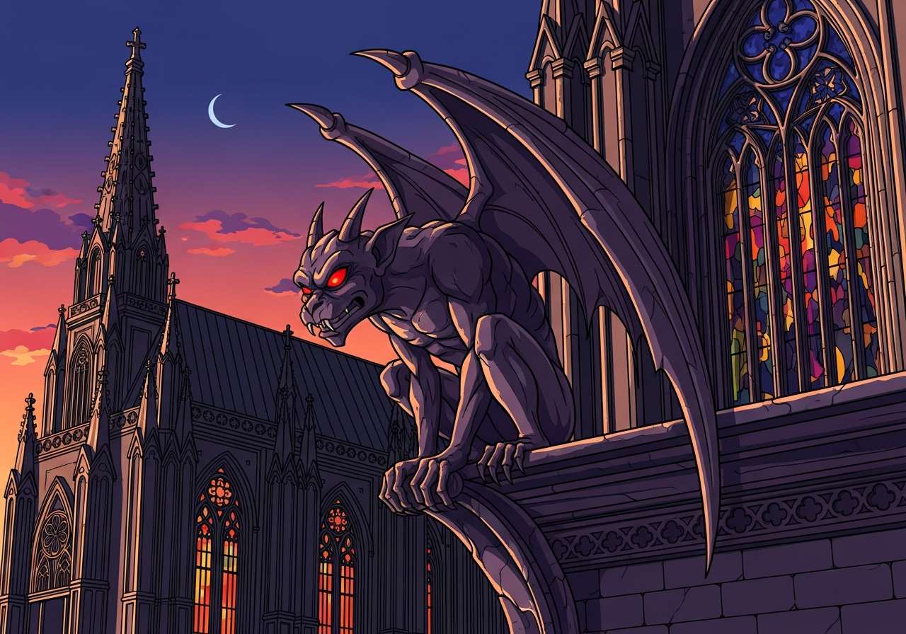その古い大聖堂には、石壁に彫られたグロテスクな像が飾られていた。