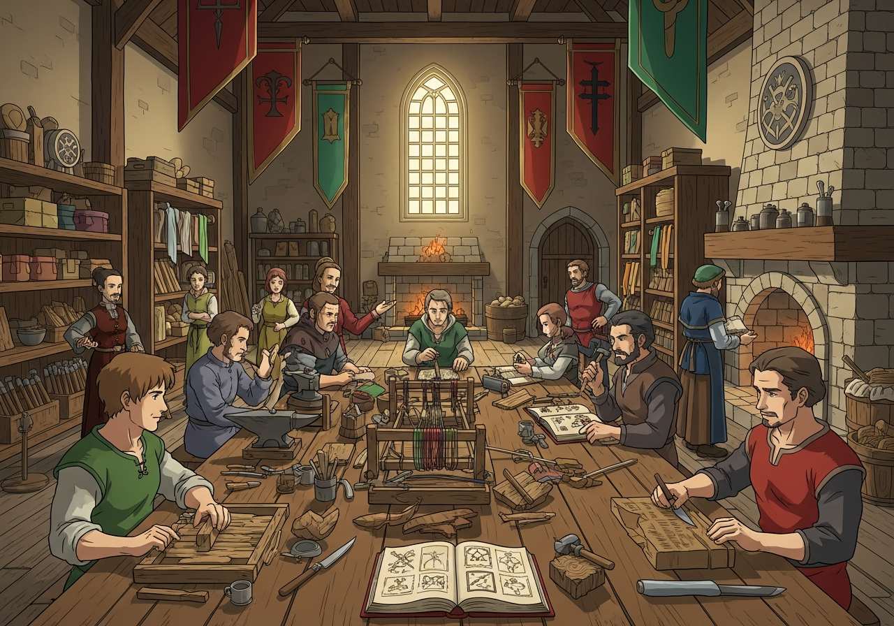 同じ職業や目的を持つ人々が集まって作る組織や団体のこと。中世ヨーロッパでは、職人や商人が互いに助け合い、技術や利益を守るために結成しました。