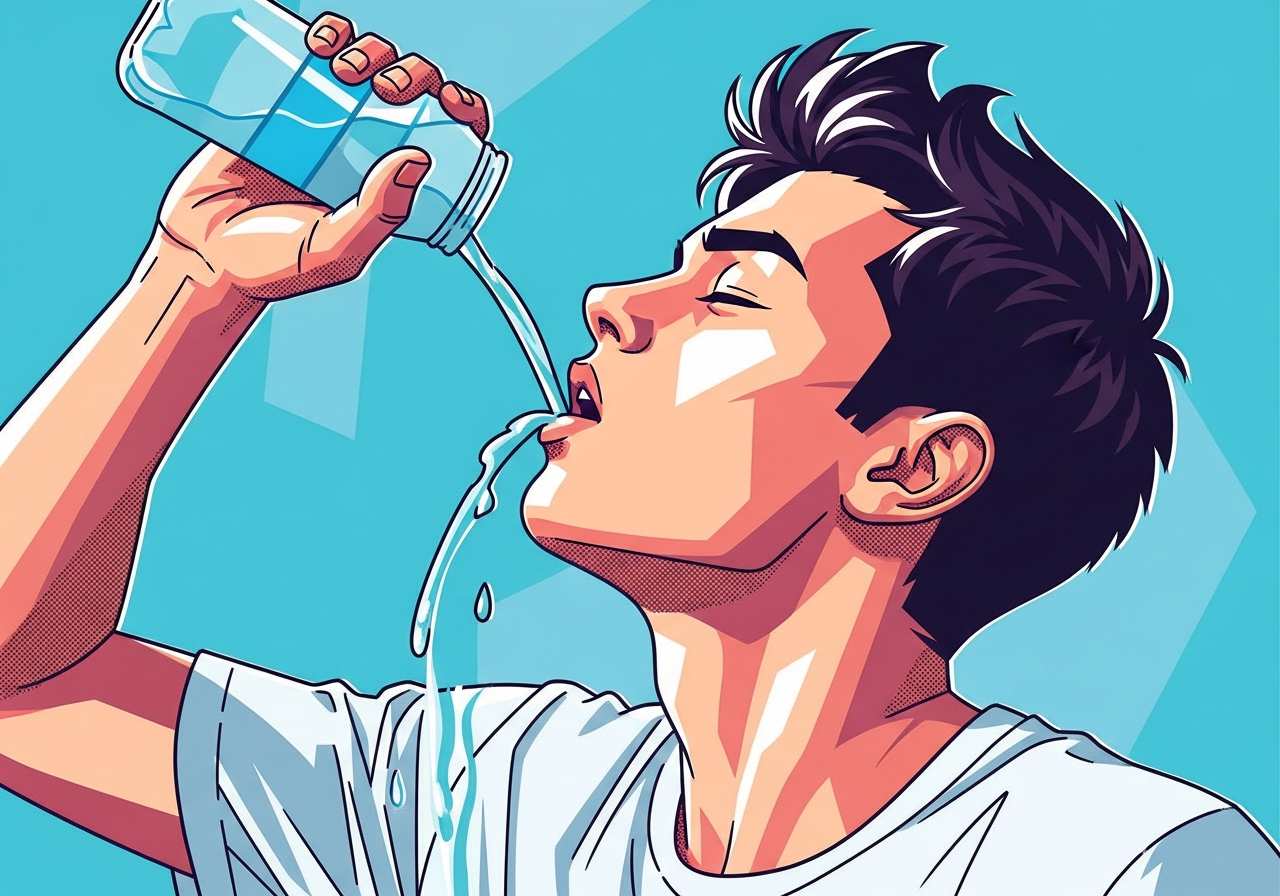 彼はレースの後、コップ一杯の水をがぶがぶ飲んだ。