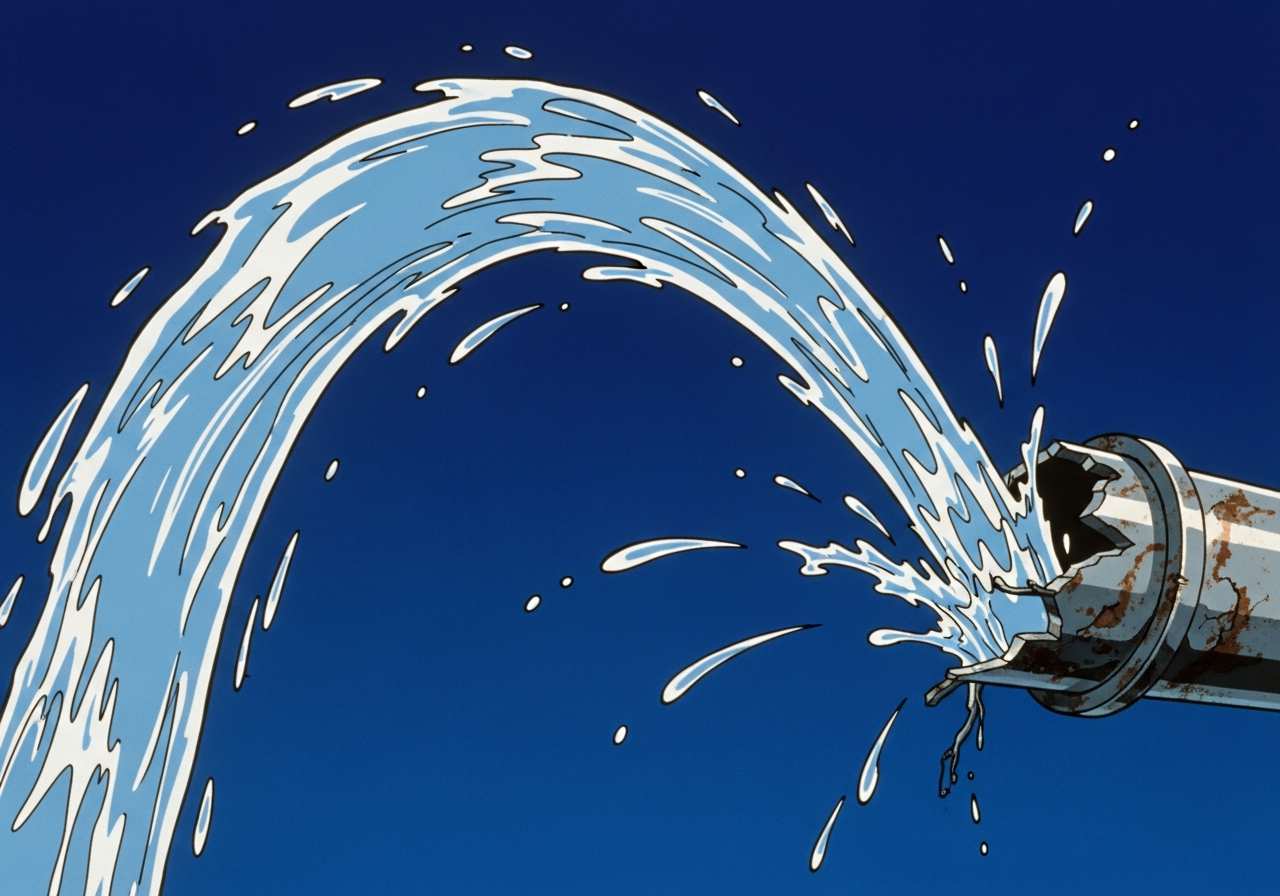 A gush of water burst from the broken pipe.