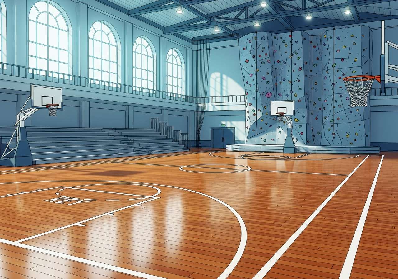 The students play basketball in the gymnasium every Friday.