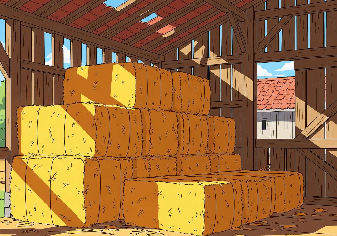 農家は冬の間馬に与えるために納屋に干し草を保管した。