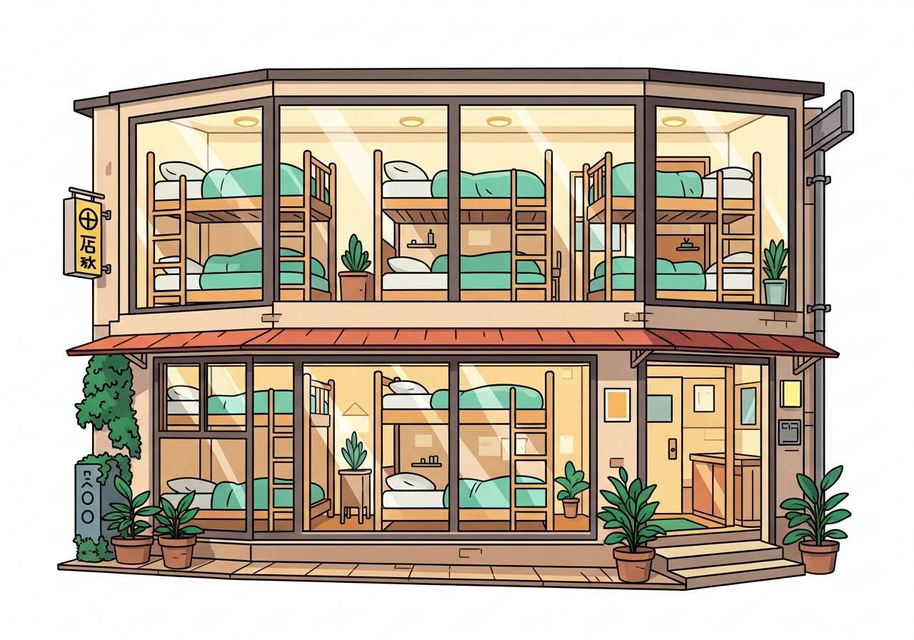 旅行者向けの安価な宿泊施設で、通常は相部屋や共用設備を備えています。