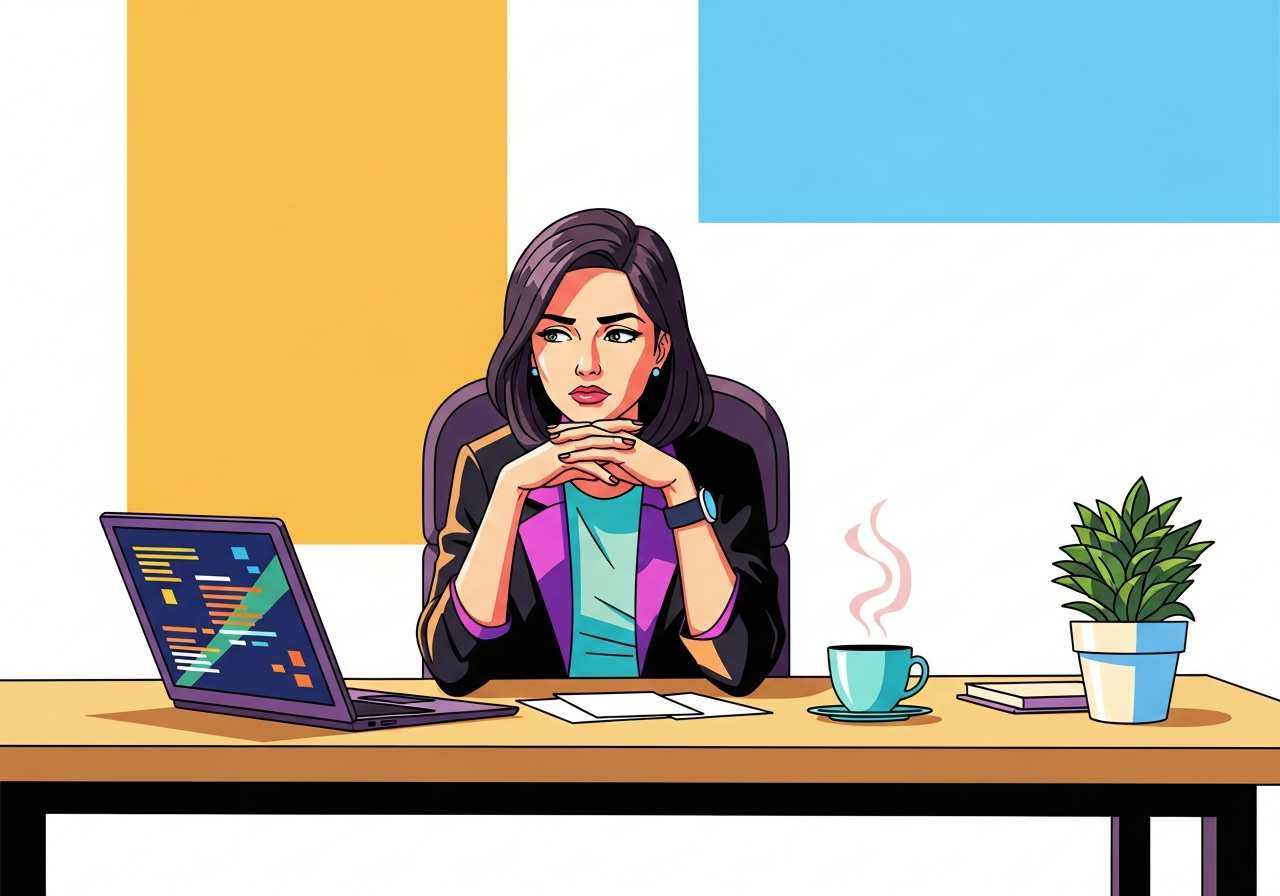 彼女は仕事に集中しようと、机に向かって背中を丸めた。