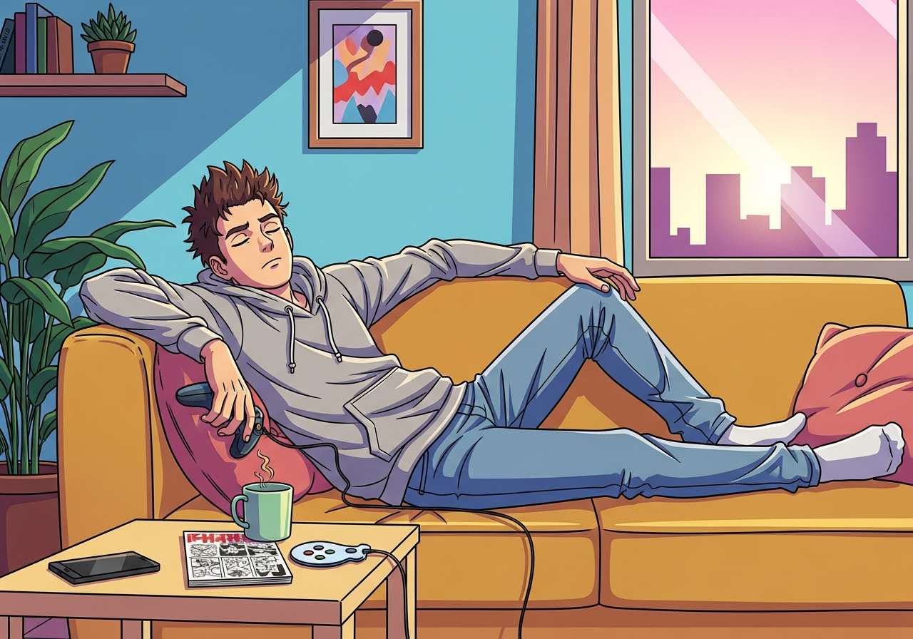 彼はテレビを見ながら午後をぶらぶらと過ごした。