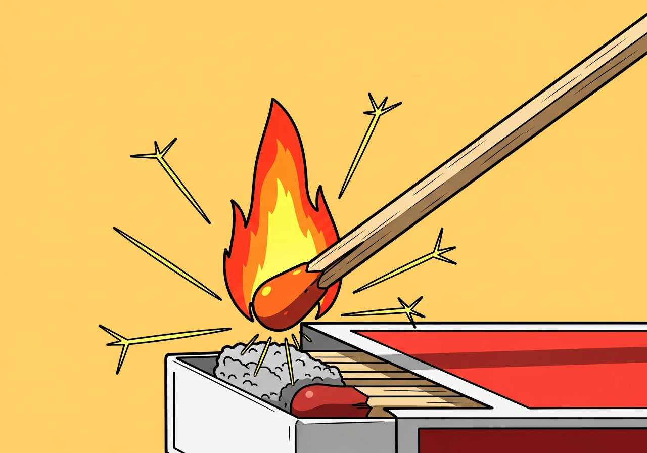 「ignite」は「火をつける」「点火する」という意味の動詞です。物理的に火をつける場合や、比喩的に感情や興味を燃え上がらせる場合にも使われます。