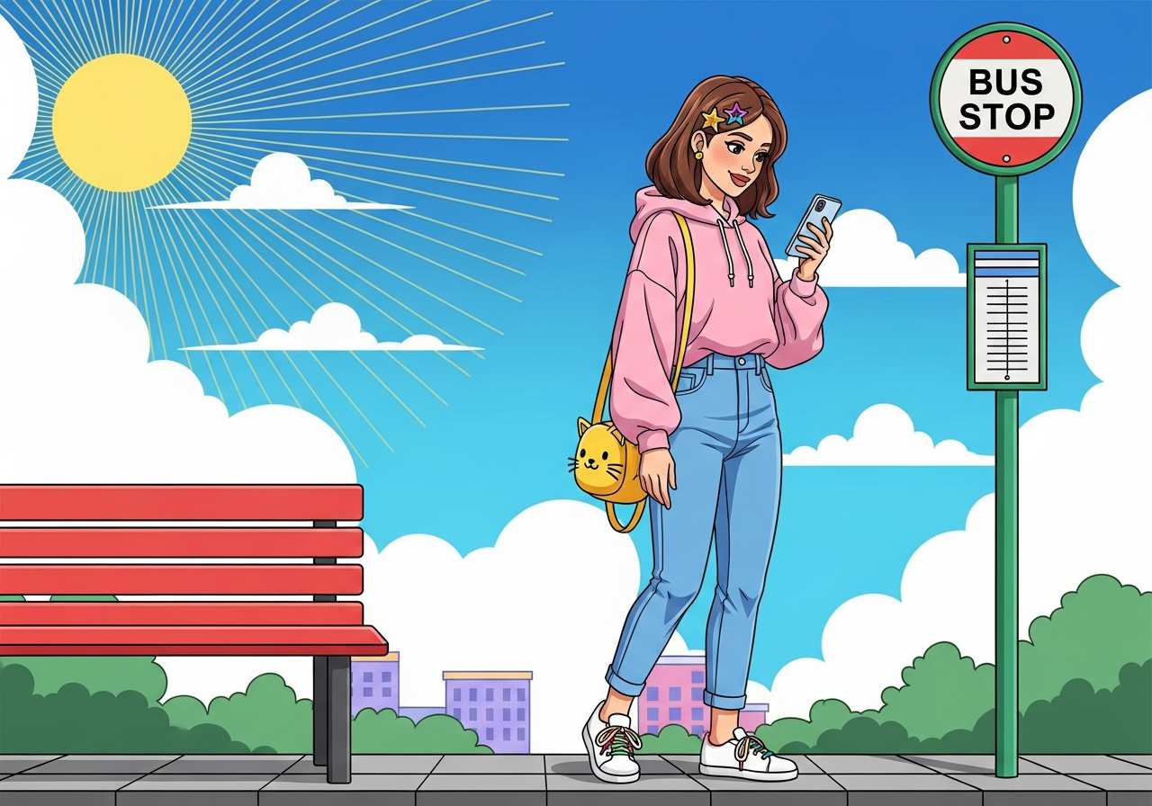 バスがまた遅れたとき、彼女はいらいらしたため息をついた。
