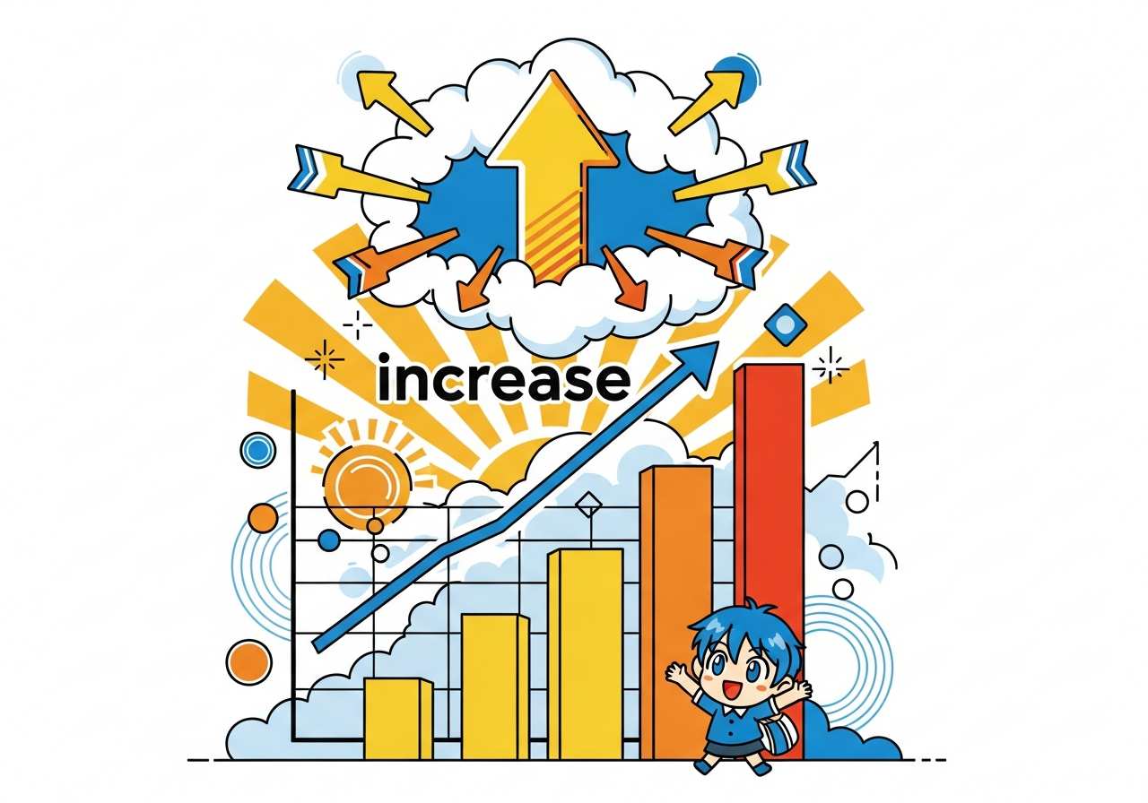 「増加する」「増やす」という意味の動詞・名詞。数量や程度が大きくなること、または大きくすることを表します。ビジネス、学術、日常会話など幅広い場面で使われる基本的な語彙です。
