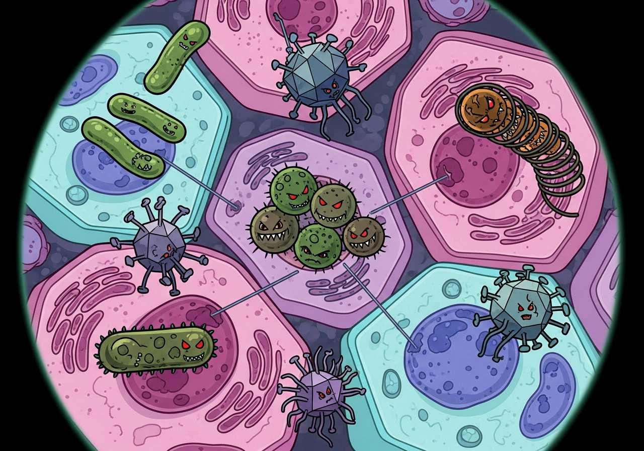 病原体が体内に侵入して増殖し、病気を引き起こすこと。医学や日常会話で広く使われる中立的な用語ですが、否定的な意味合いを持ちます。