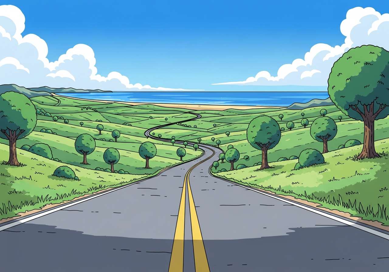 私たちは山を探索するために海岸から内陸へ車を走らせた。