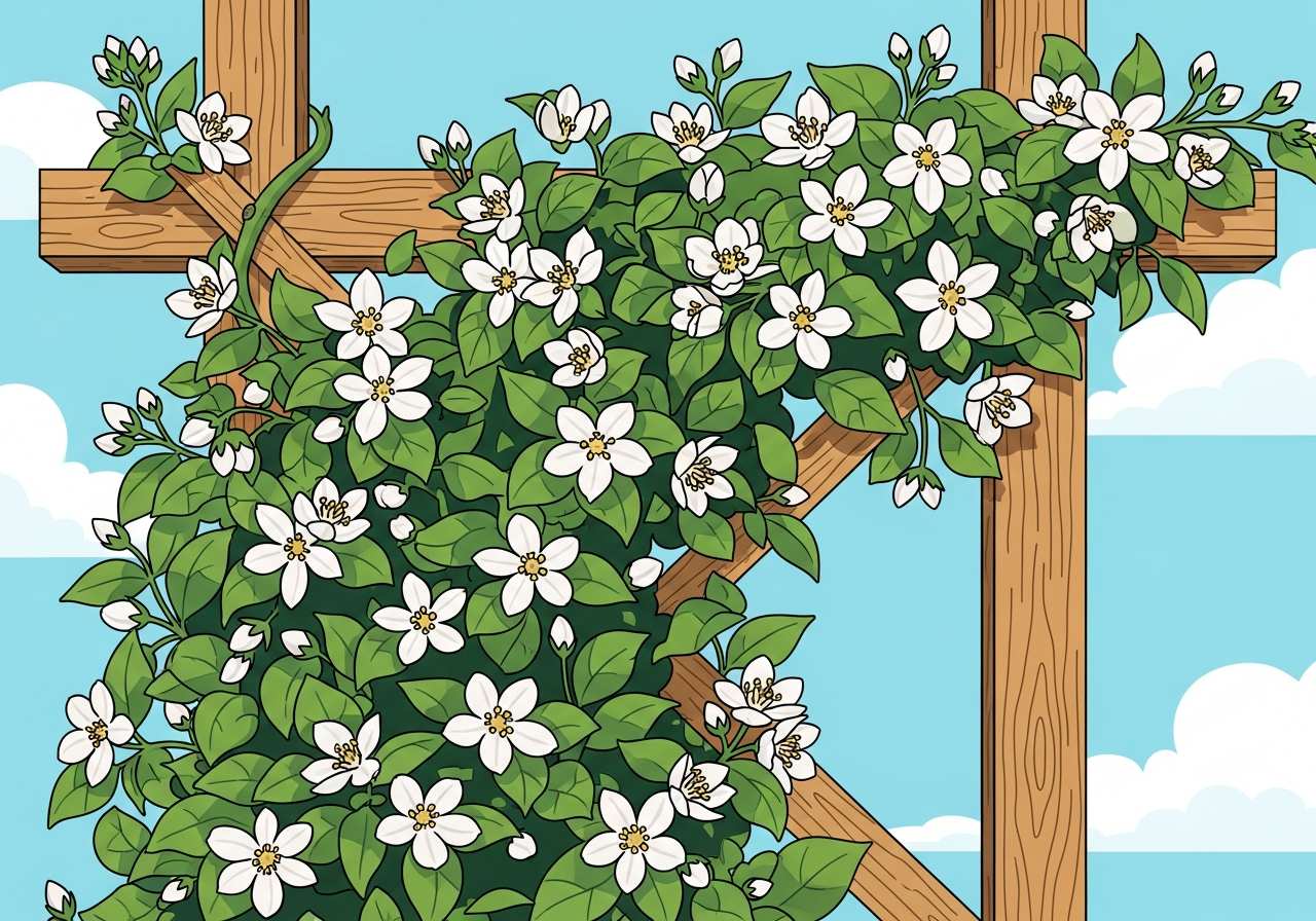 庭のジャスミンは毎年夏に香りのよい白い花を咲かせます。