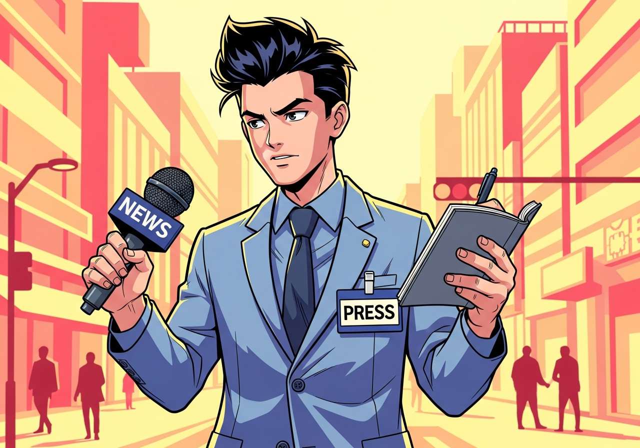 ニュースや記事を取材・執筆・報道する職業の人。新聞、雑誌、テレビ、オンラインメディアなどで働き、事実を調査して公衆に伝える役割を担う。