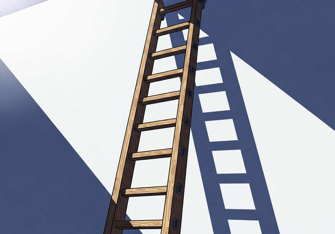 はしご。高い場所に登るための道具で、横木を縦の支柱に取り付けた構造を持つ。