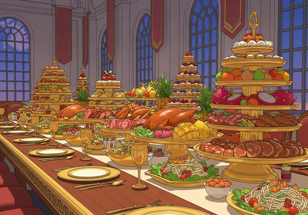 The hotel hosted a lavish banquet for its guests.