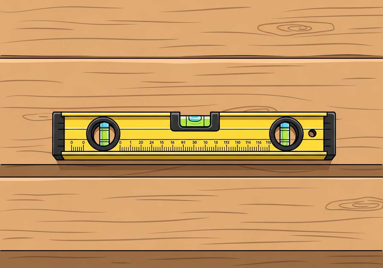 大工は棚がまっすぐかどうか確認するために水準器を使った。