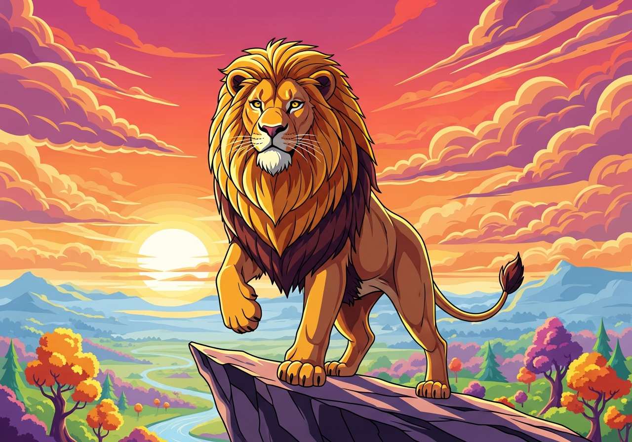 大型のネコ科動物で、オスはたてがみを持つ。「百獣の王」として知られ、主にアフリカのサバンナに生息する。