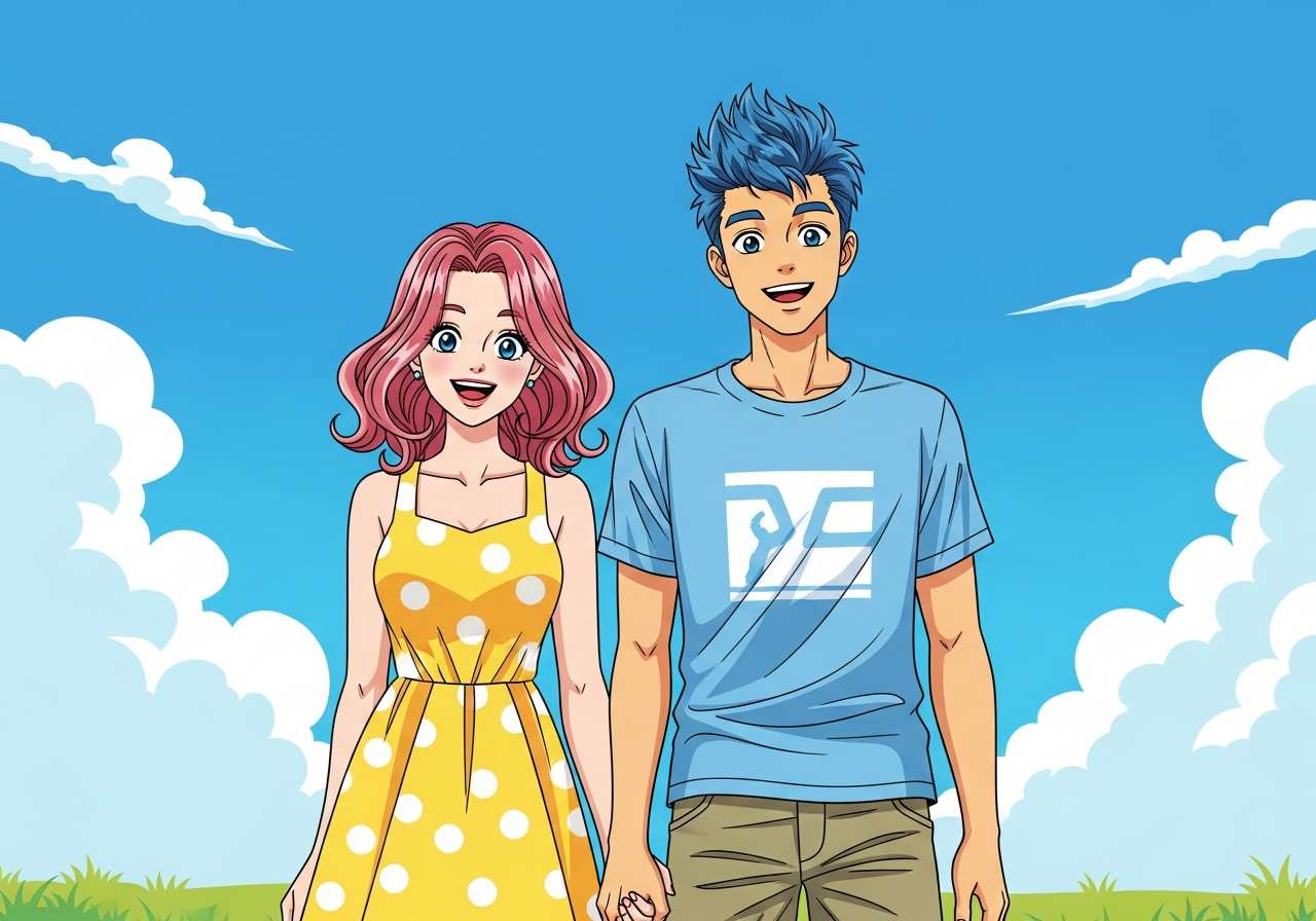 二人の恋人は公園を歩きながら手をつないでいた。