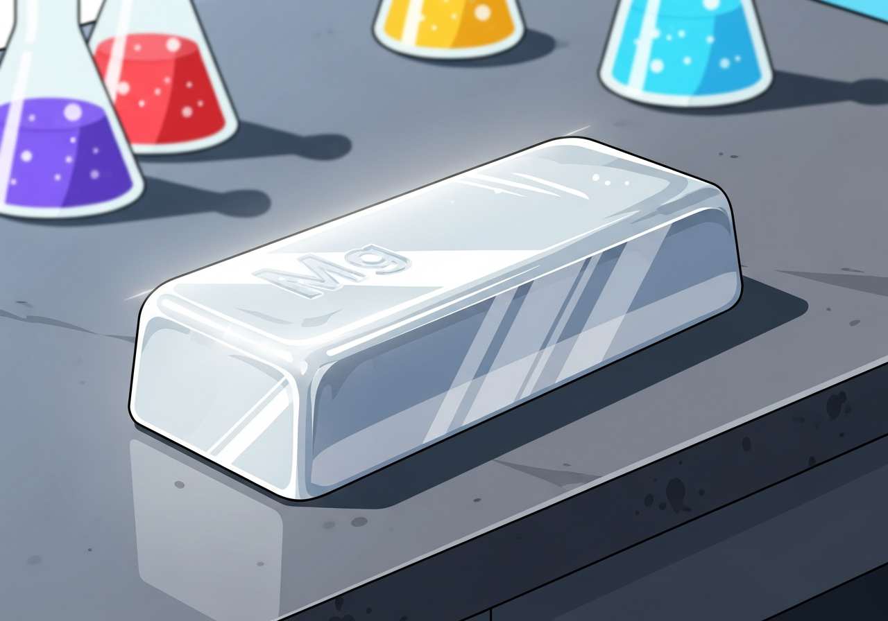 //mæɡˈniː.zi.əm//軽量で反応性の高い金属元素