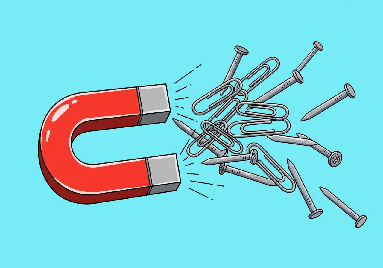 「磁気の」「磁石の」という意味の形容詞。磁力に関連するもの、または人を引きつける魅力的な性質を表す際に使われます。