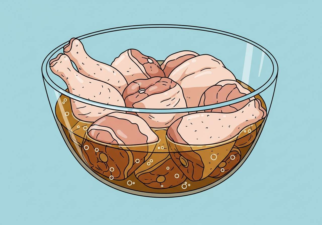 鶏肉を冷蔵庫で少なくとも2時間マリネ液に浸けておいてください。