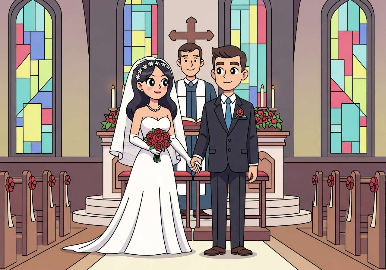 司祭は小さな教会で彼らの結婚式を執り行った。