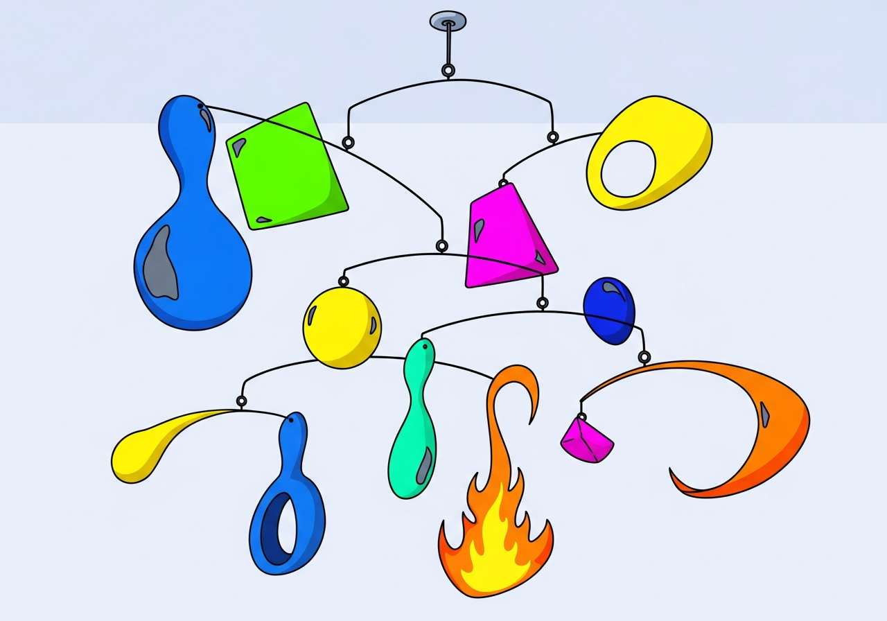 モビール(吊り下げ式で空気の流れで動く彫刻や装飾)に関する