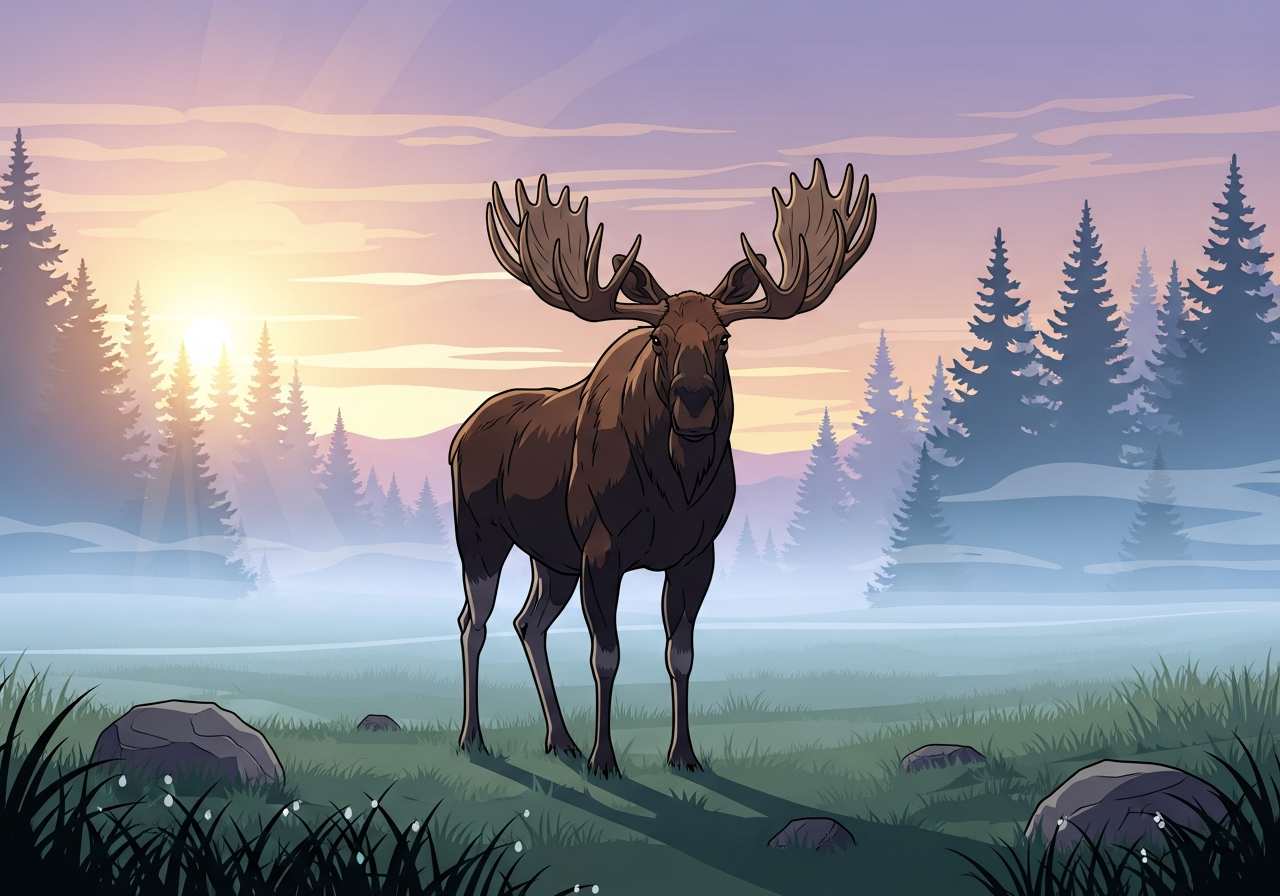 北アメリカに生息する大型のシカ科動物で、オスは大きな掌状の角を持つ。