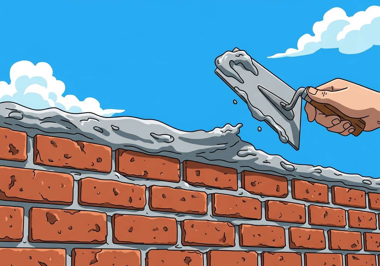 建築作業員はレンガを固定するために、レンガの間にモルタルを塗った。