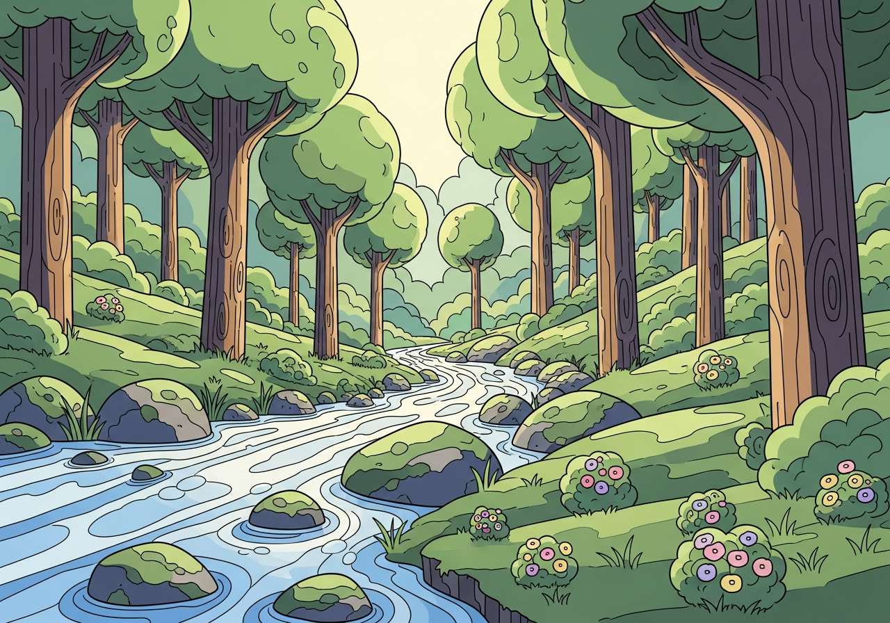 The stream murmured softly through the forest.