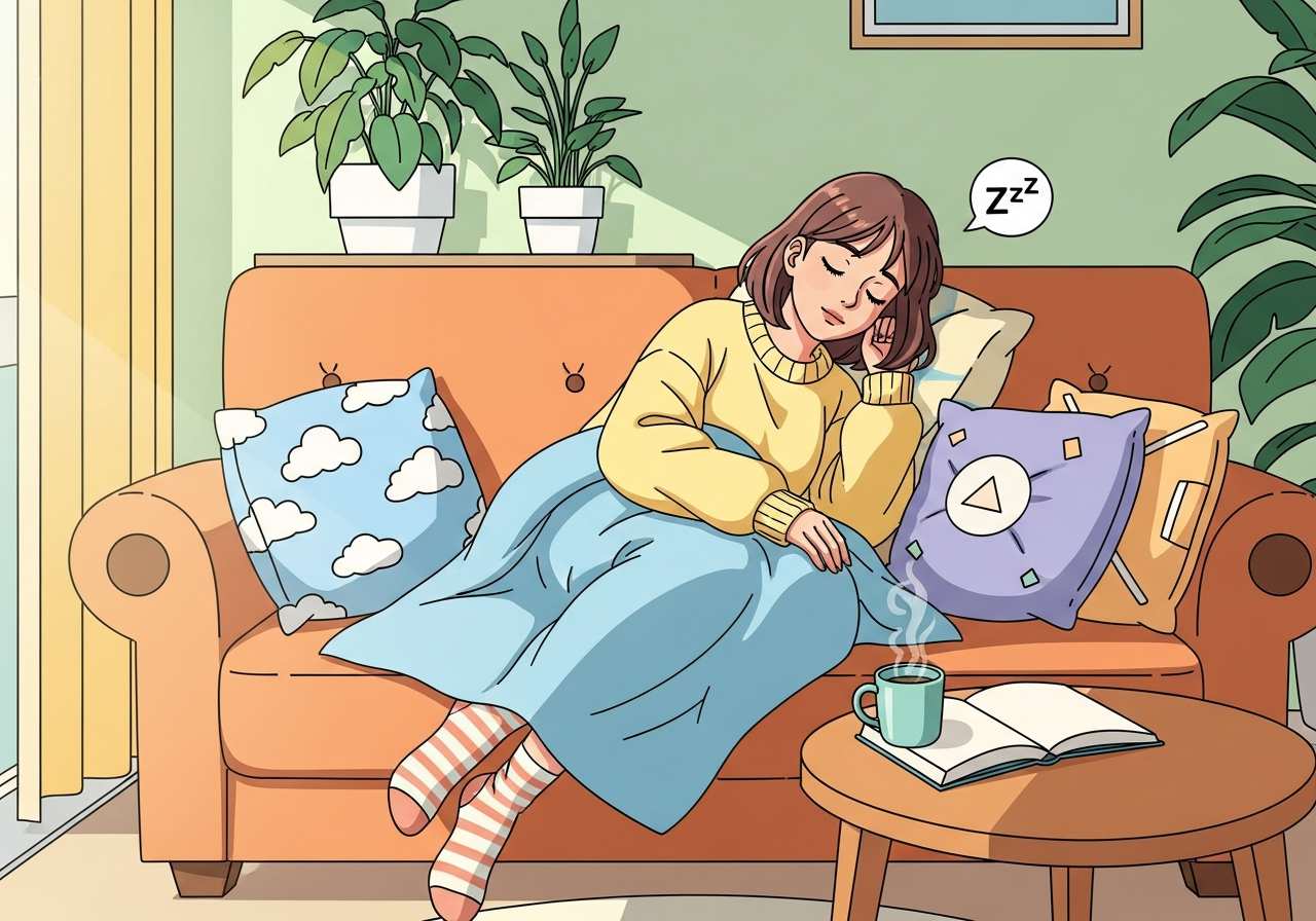 私は昼食後にソファでうたた寝するのが好きです。