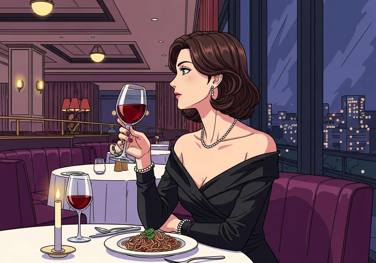 彼女はパーティーに派手なピンクの帽子をかぶって行った。