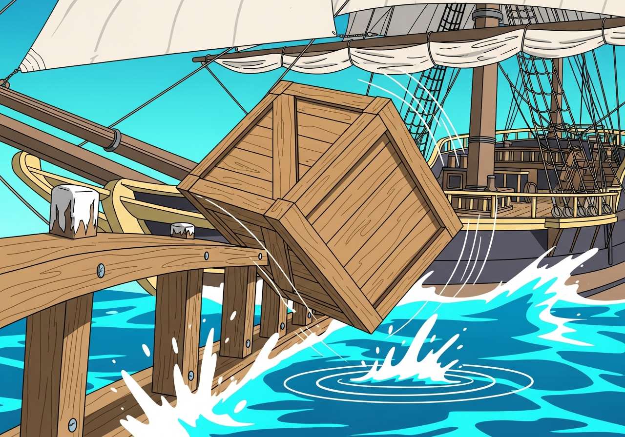 船から水中に落ちることを意味する航海用語。比喩的に「度を越す」「やりすぎる」という意味でも使われます。