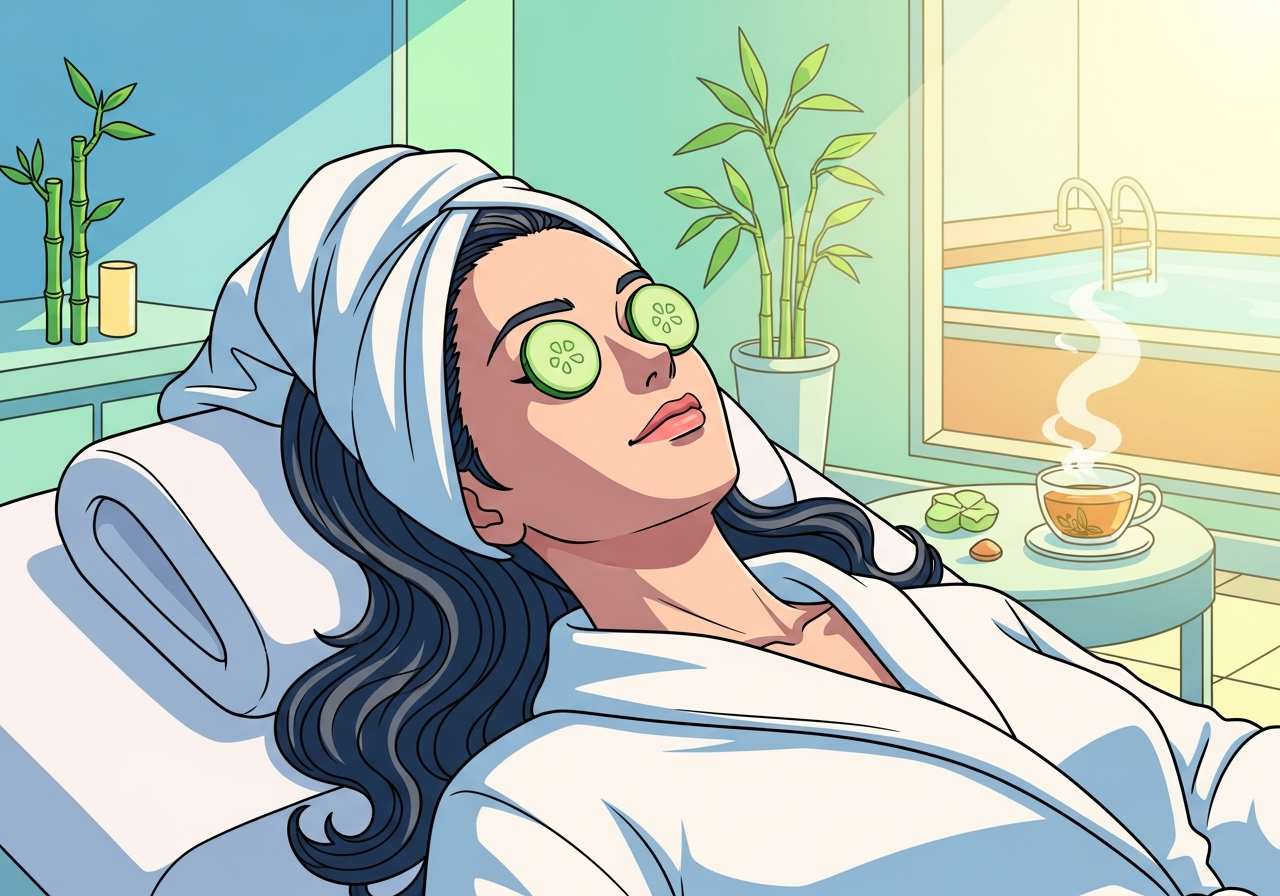 彼女はリラックスできるスパの日で自分を甘やかした。