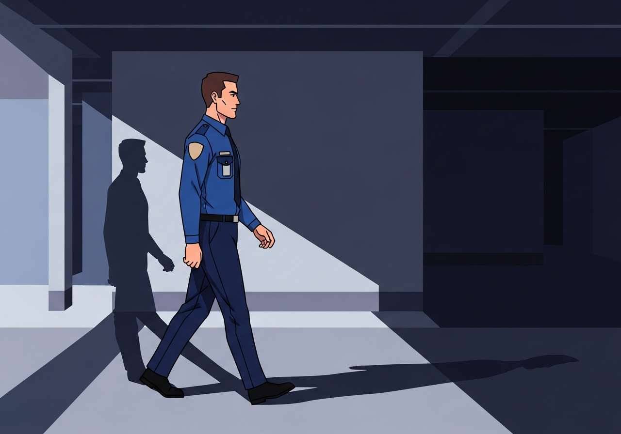 警備のパトロール隊が1時間ごとにビルを巡回している。