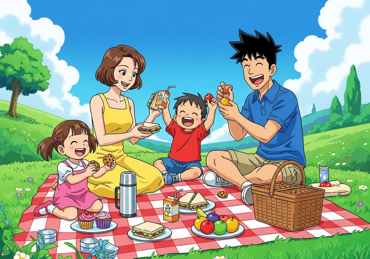 屋外で食事を楽しむ活動。通常、公園や自然の中で行われ、レジャーや社交の機会として楽しまれます。