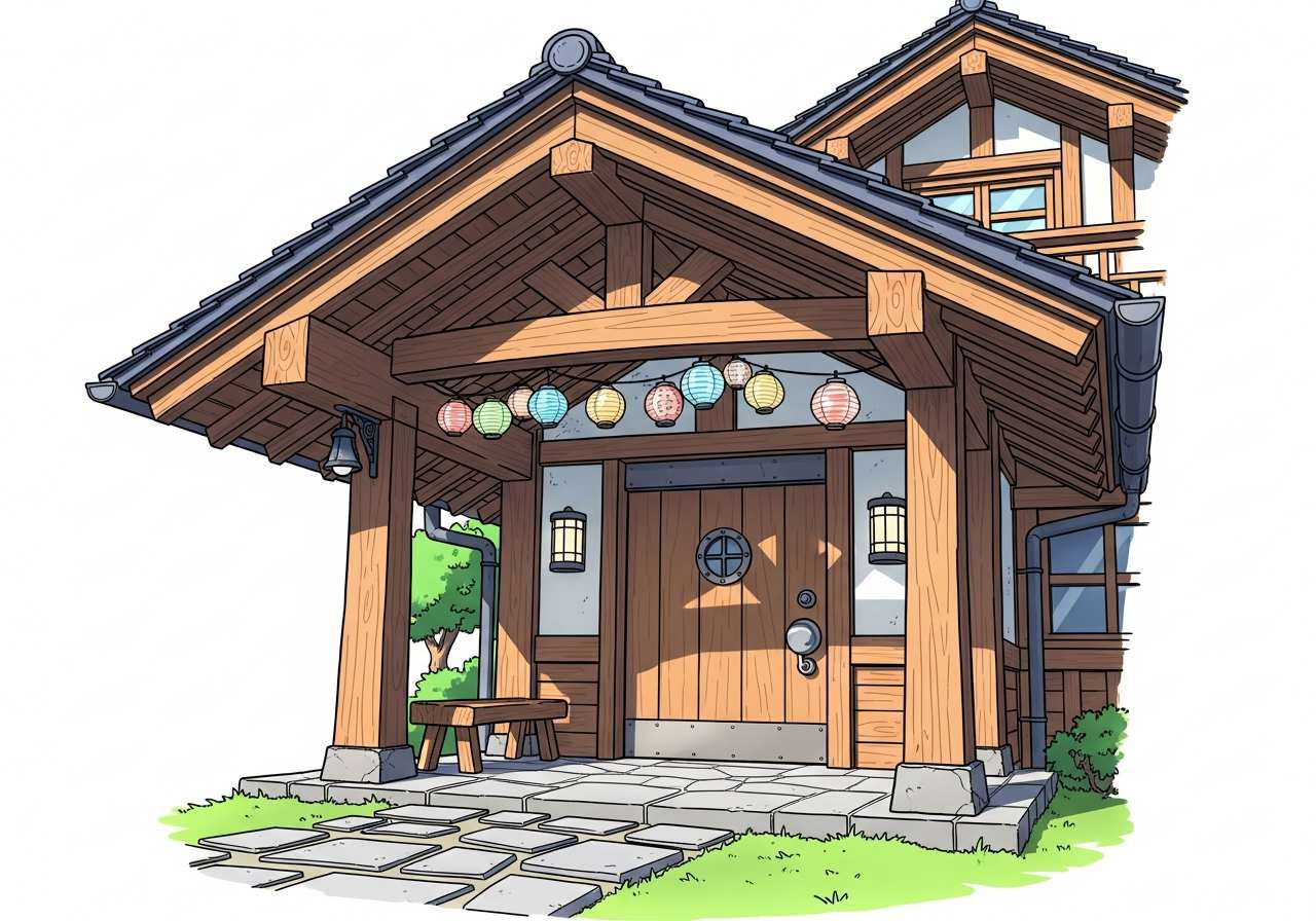 玄関ポーチは家の入口前にある屋根のある空間で、雨や日差しを避けることができます。アメリカでは、椅子を置いてくつろぐための広いポーチ(ベランダ)を指すこともあります。