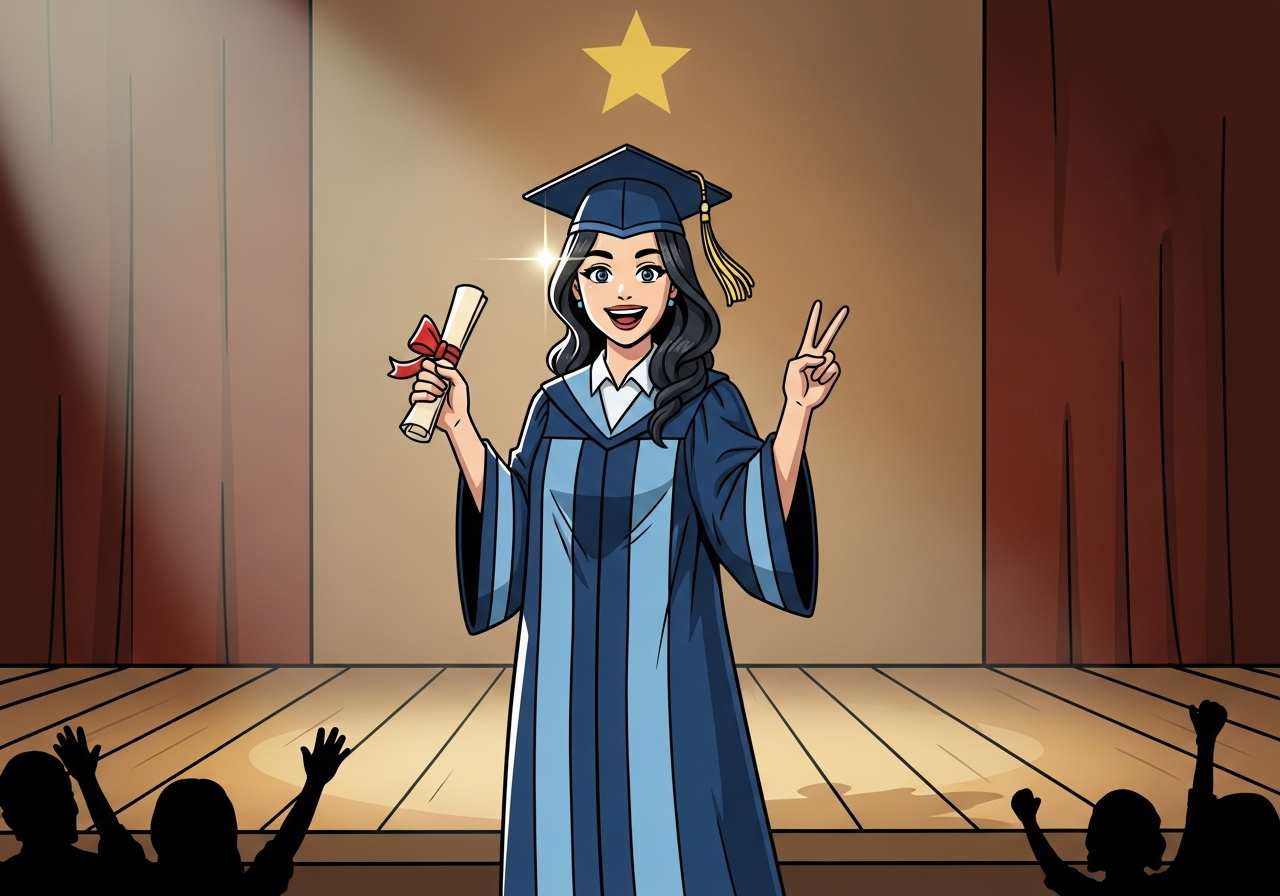 She proudly showed her diploma to her parents.