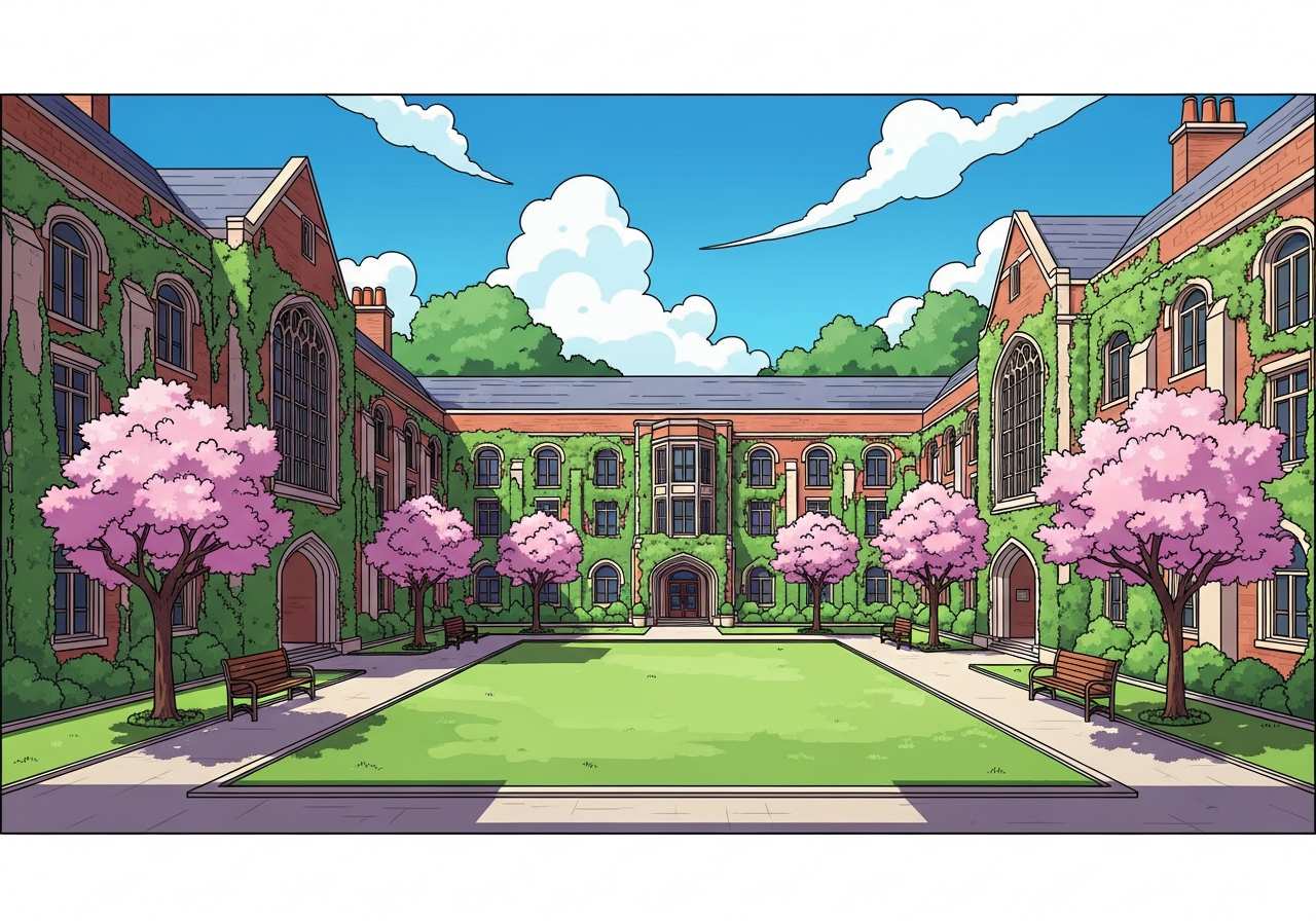 大学や学校の中庭や広場を指すカジュアルな表現です。