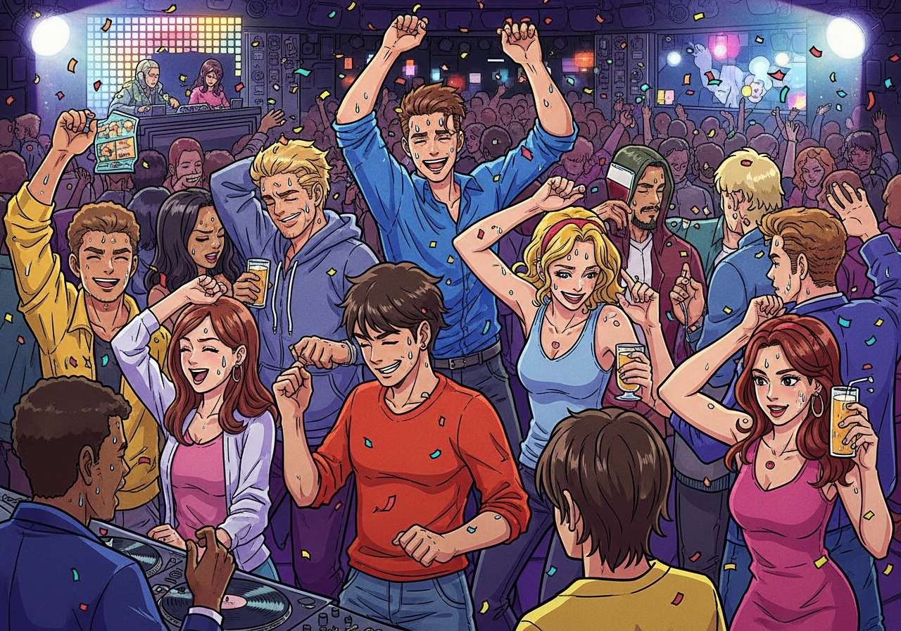 騒々しい群衆が夜遅くにバーからあふれ出た。