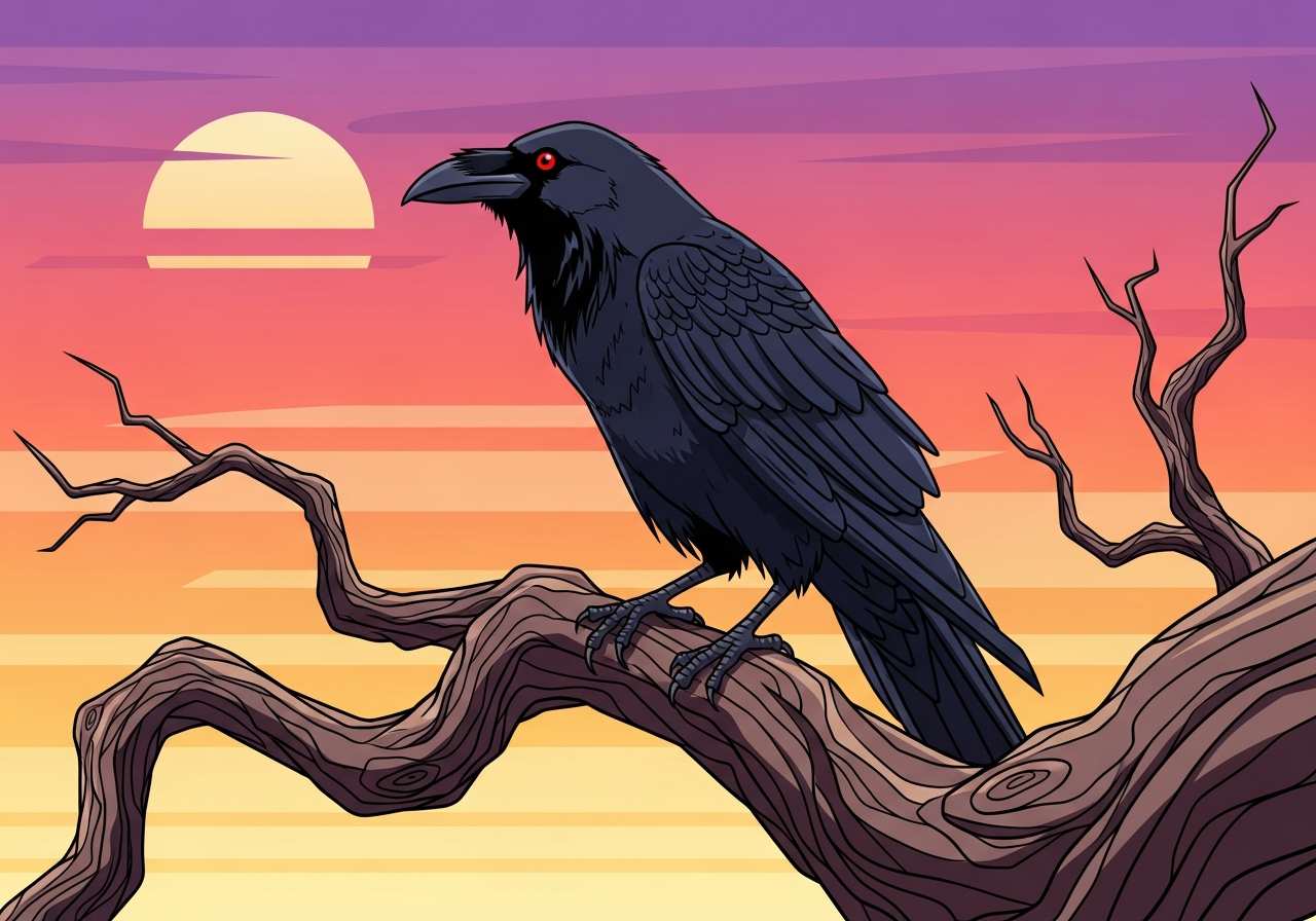 大型の黒い鳥で、カラス科に属し、知能が高く、神話や文学でよく象徴的に登場します。