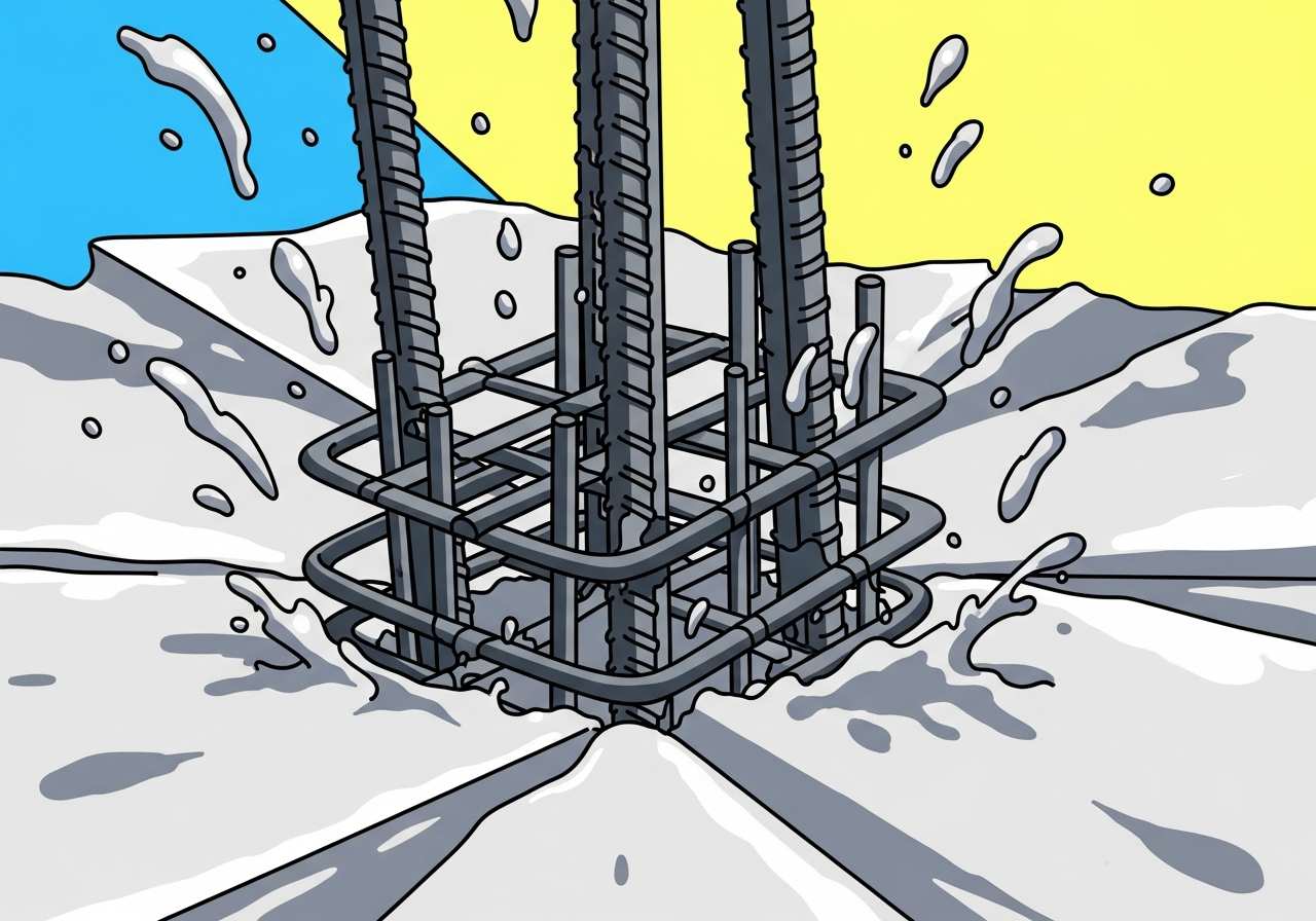 そのコンクリート壁には強度を高めるための鉄筋の補強材が入っている。