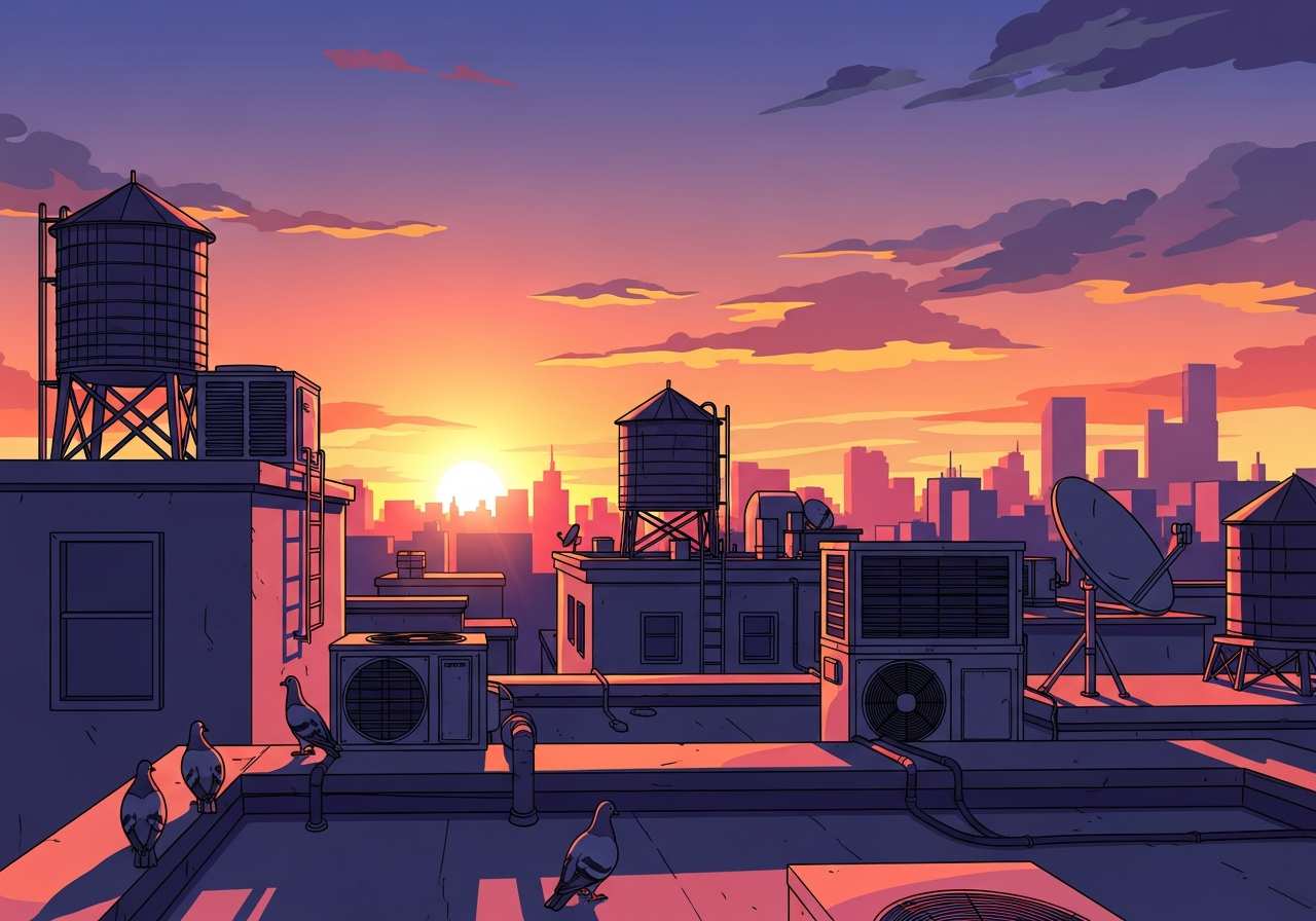 建物の屋根の上部または表面を指す名詞。屋上庭園やレストランなど、屋根の上に設けられた空間を表すことが多い。