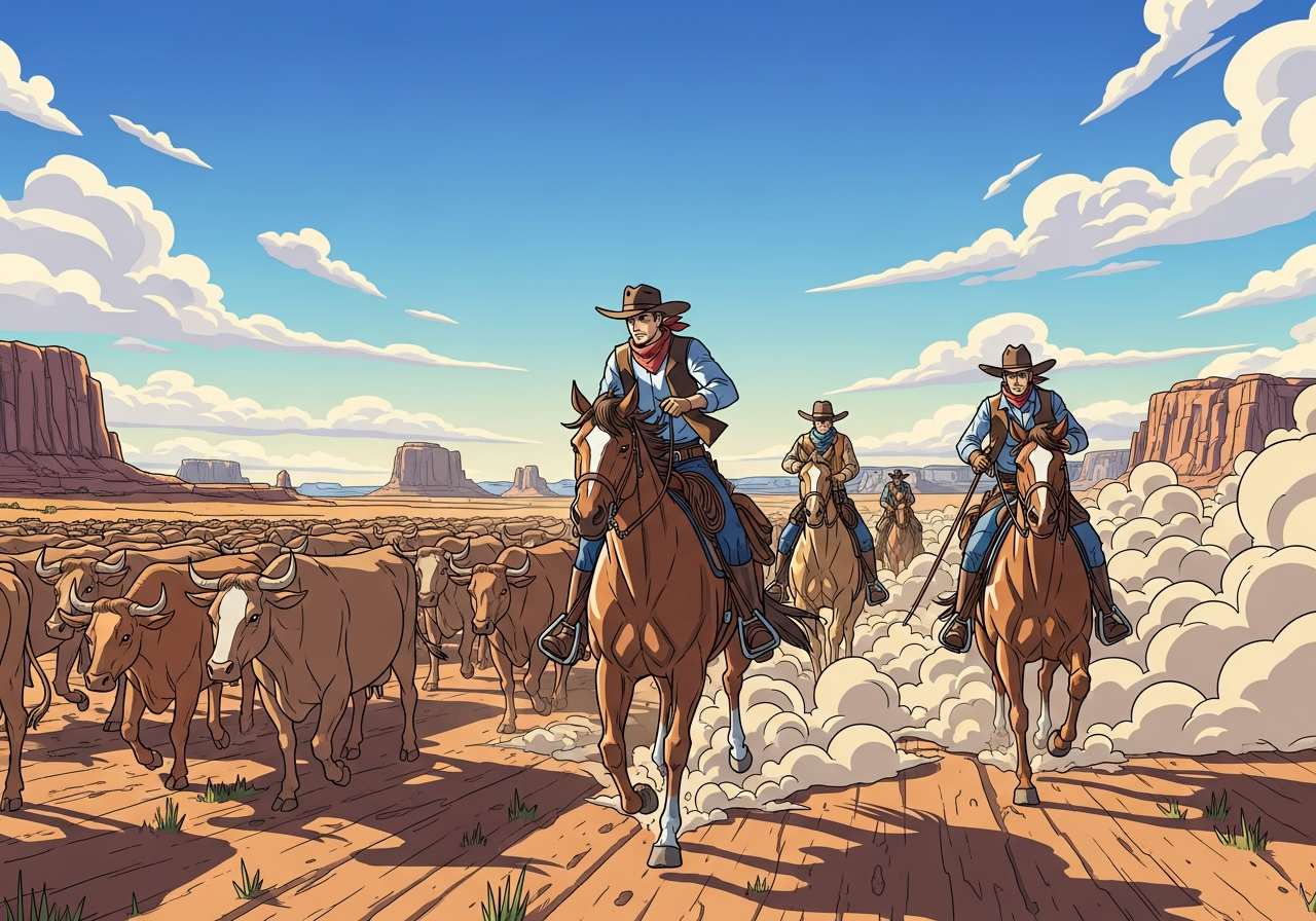 カウボーイたちは夜明けにすべての牛を集めるための駆り集めを始めた。