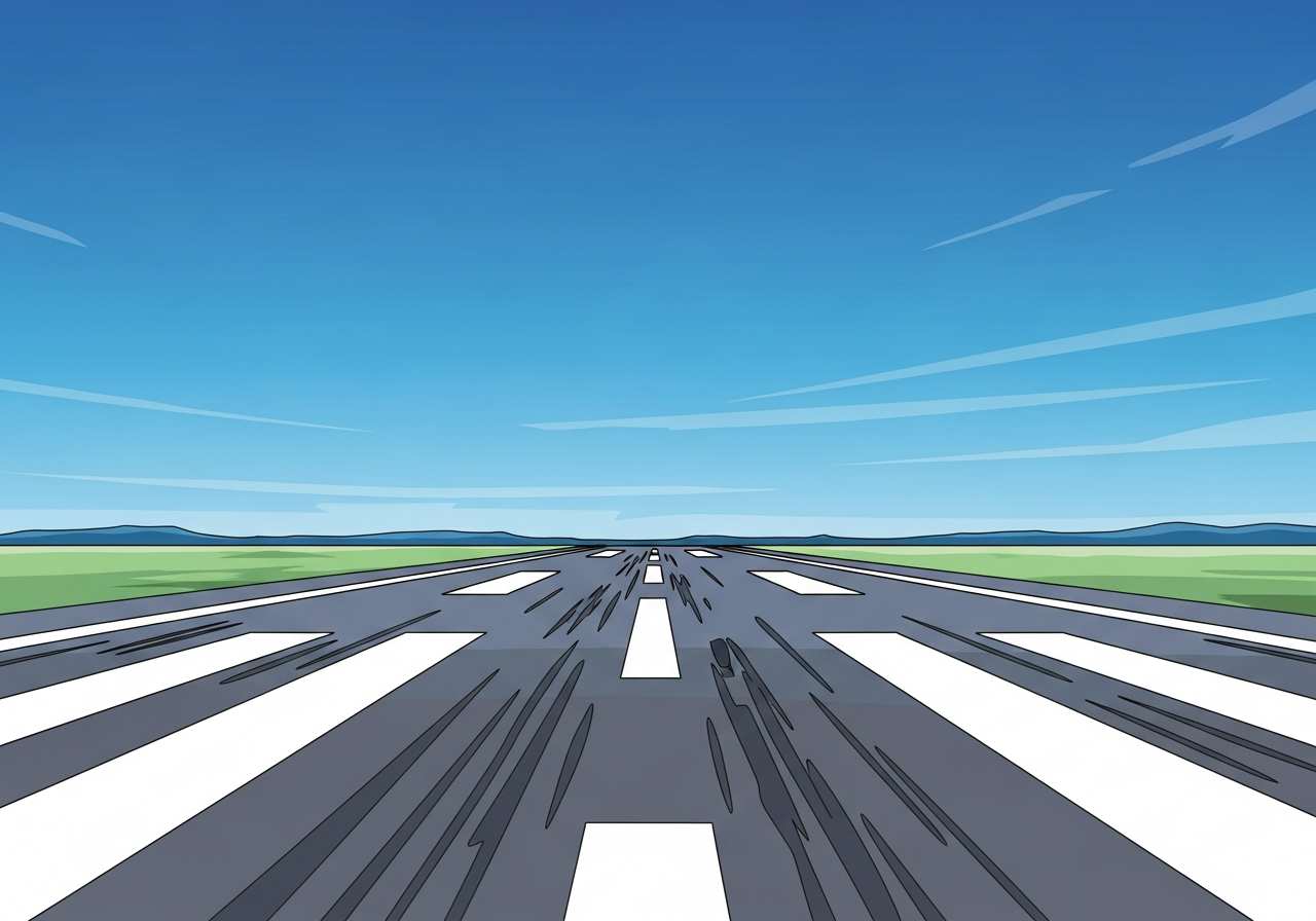 飛行機が離着陸するための長い舗装された道路。ファッションショーでモデルが歩く細長い舞台も指します。