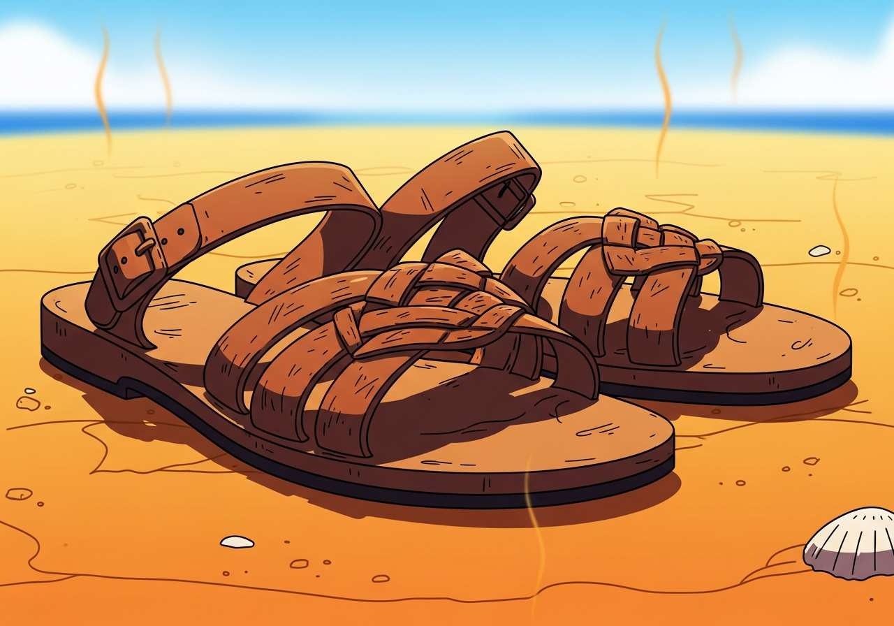 足の甲やつま先が露出した軽い履物で、ストラップで足に固定します。夏や暖かい気候でよく使用されます。