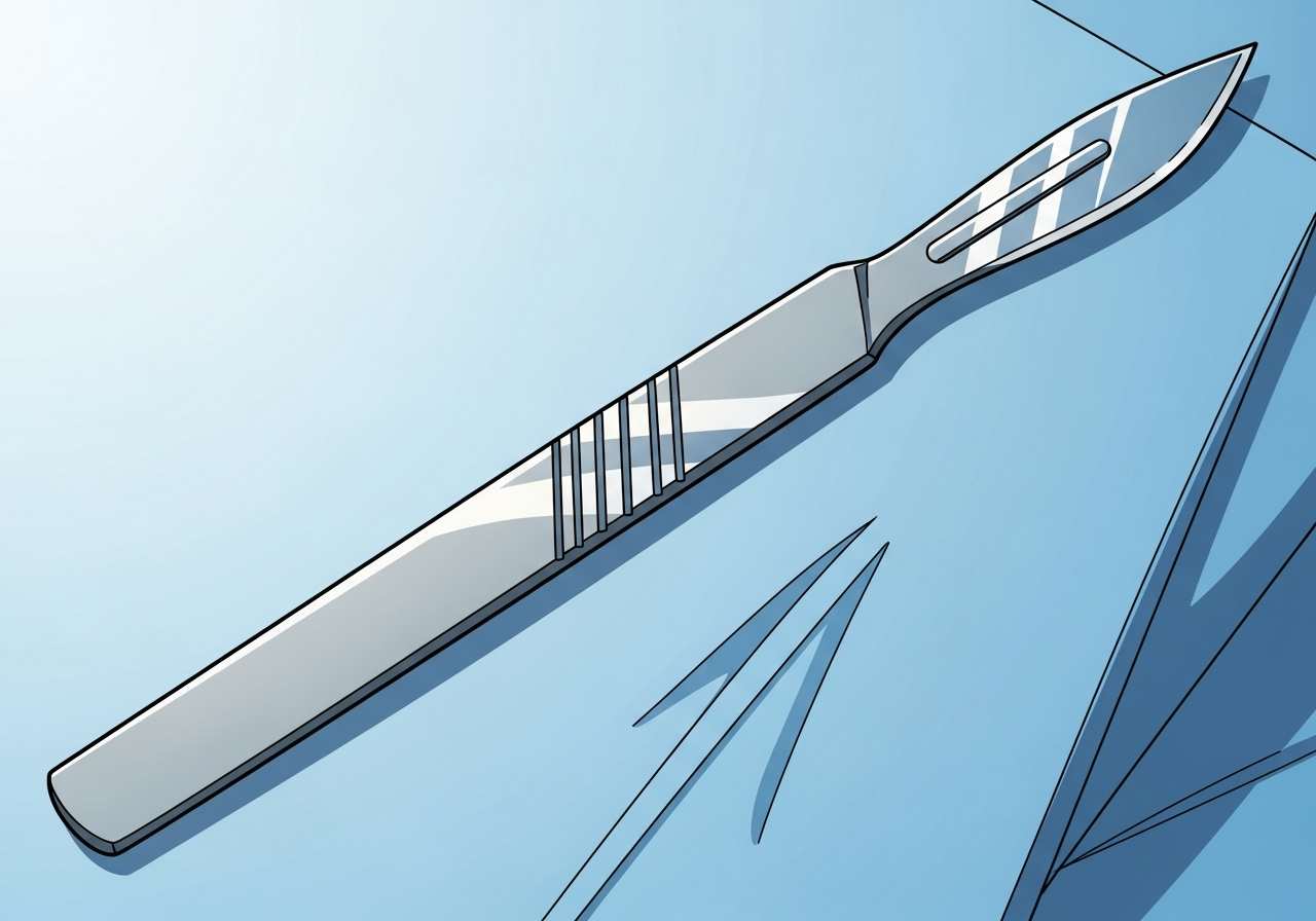外科手術で使用される小型の鋭利なナイフ。精密な切開に用いられる医療器具です。