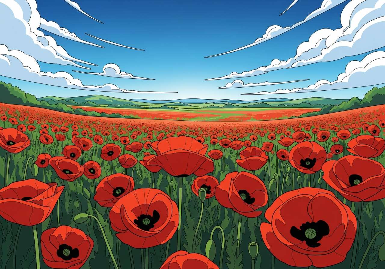 鮮やかな赤色を表す形容詞。深紅色や緋色とも訳される。