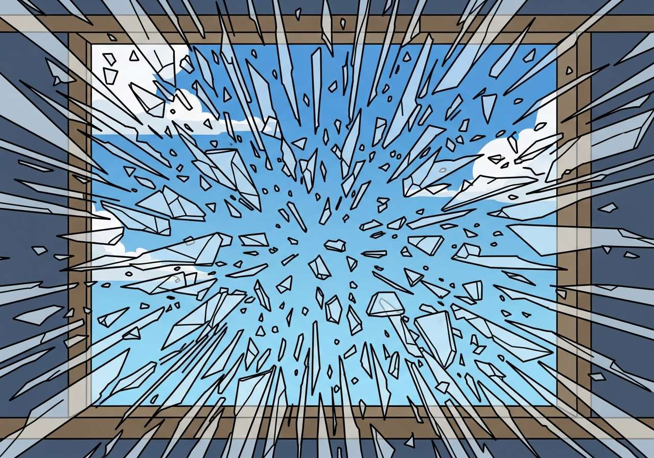 Shatters of glass were scattered across the floor after the window broke.