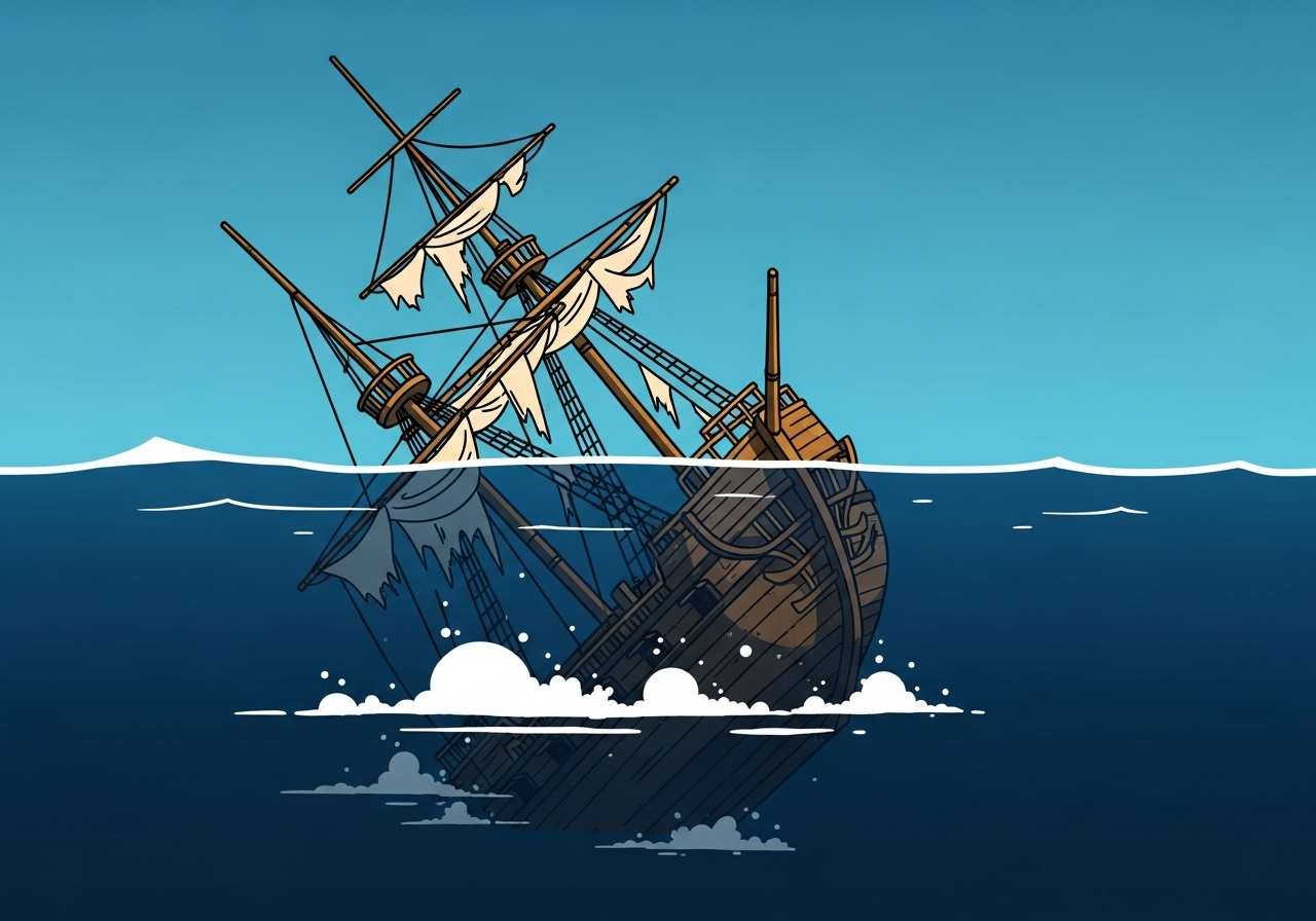 The ship sank to the bottom of the ocean.